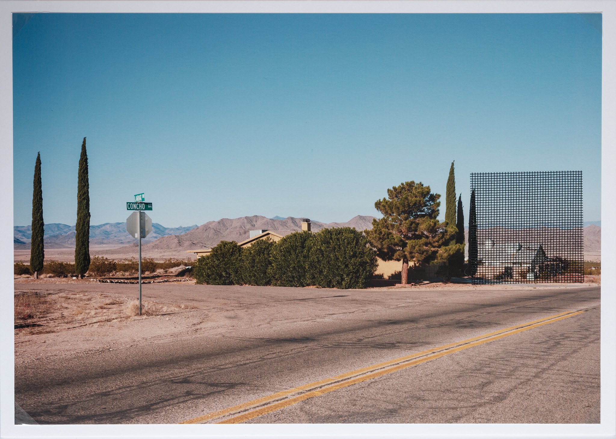 She uses road trips to find sites and situations that are often devoid of human activity. While looking for scenes to illustrate her topic, she chooses a couple of destinations on the map to then change course freely, guided by whatever or whoever comes on her path.